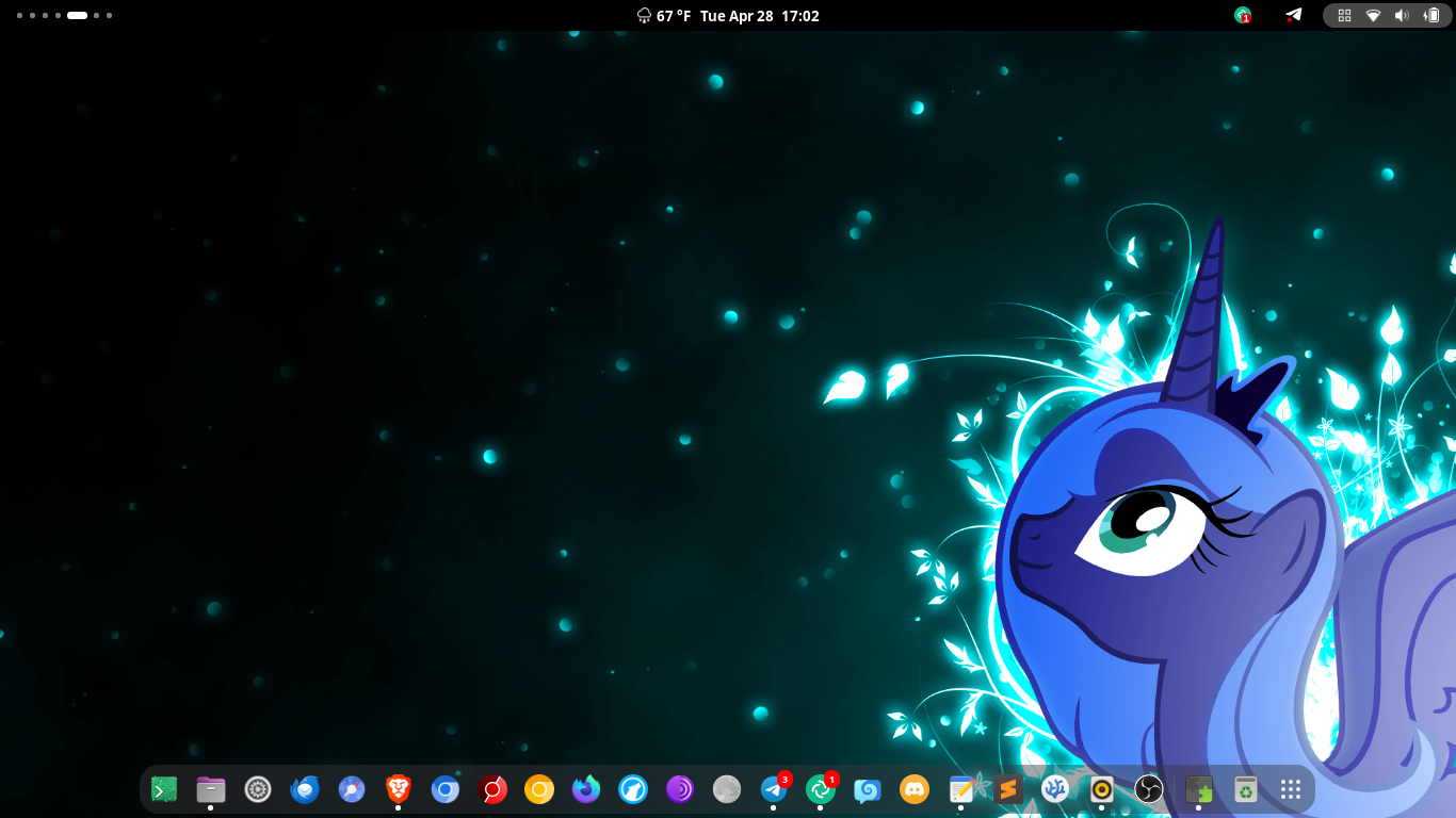 In this one, you can see a nice and clean desktop with the GNOME dash at the bottom, inviting you to launch an app.