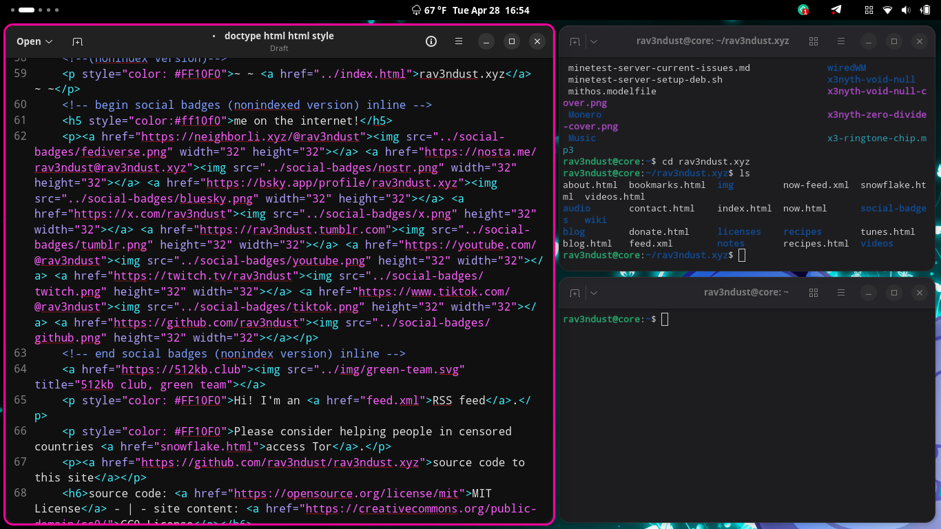 In this one, we can see GNOME's Text Editor and a few Pytxis terminals open.